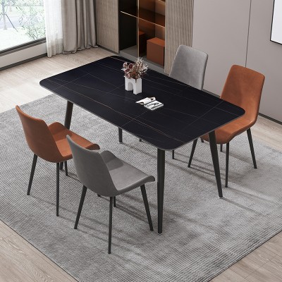 岩板餐桌现代简约家用小户型轻奢北欧家庭长方形餐桌椅组合