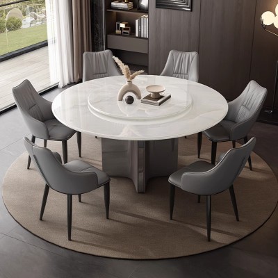 意式别墅家用高级感圆桌极简轻奢高端白冰玉天然奢石大理石餐桌