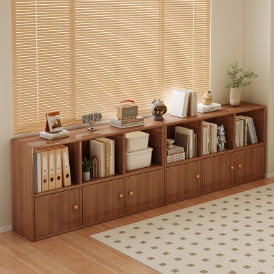 中古风实木书柜客厅储物柜落地式矮柜一体半墙置物柜胡桃木家具