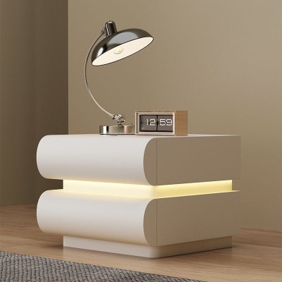奶油白色床头柜意式极简风格实木床边收纳储物柜皮质设计提升质感