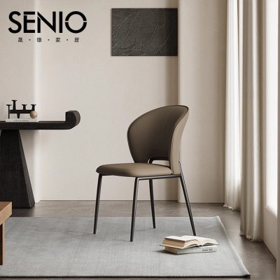 轻奢餐椅现代简约家用餐厅椅子意式设计师高端酒店洽谈皮艺靠背椅