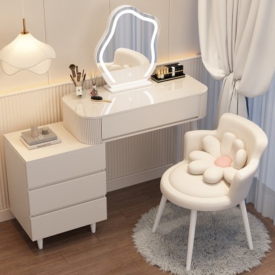 奶油风梳妆台现代简约轻奢小户型网红化妆桌一体设计