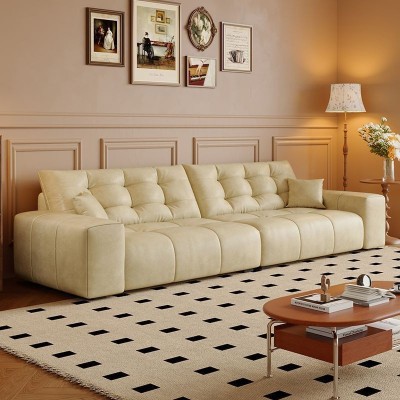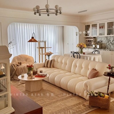 冬熊棉花糖云朵沙发法式奶油风客厅小户型轻奢白色钢琴键真皮沙发