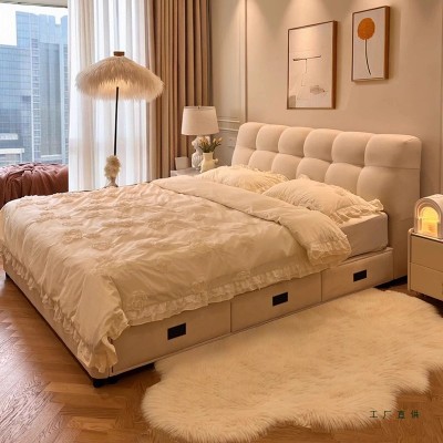 奶油风泡芙布艺床现代简约科技布2米主卧双人床