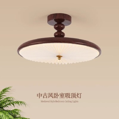 中古风百褶卧室房间吸顶灯极简复古胡桃木纹书房全光谱LED护眼灯