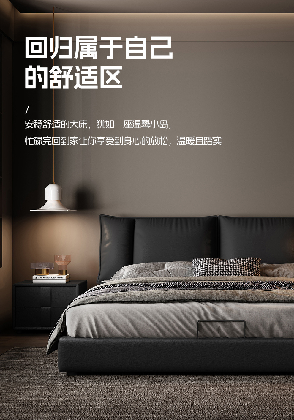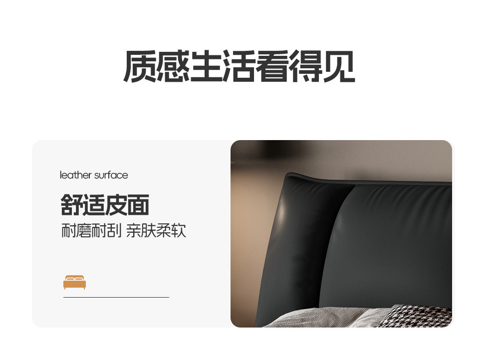 现代简约北欧轻奢小户型软包床1.8m主卧双人床