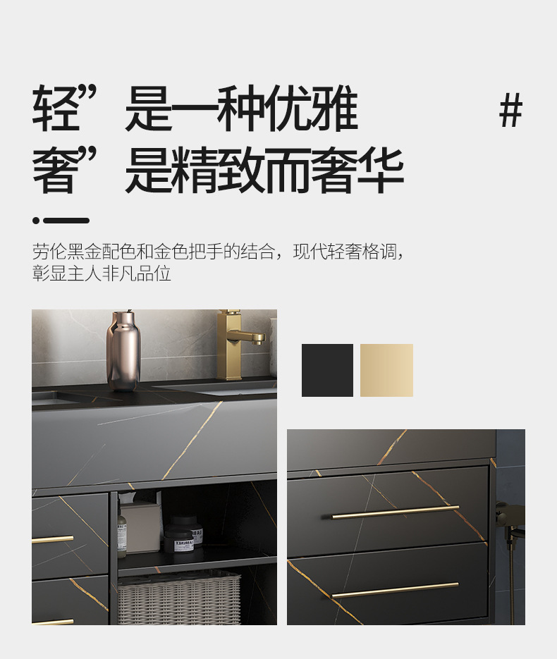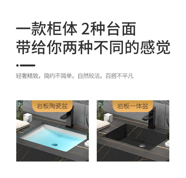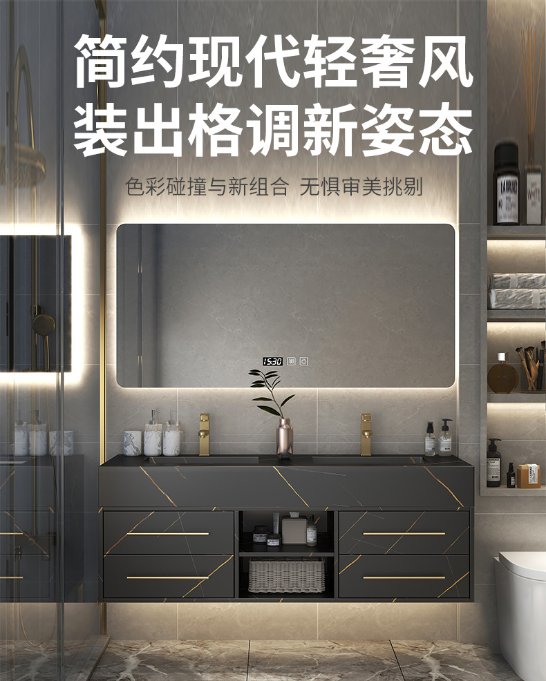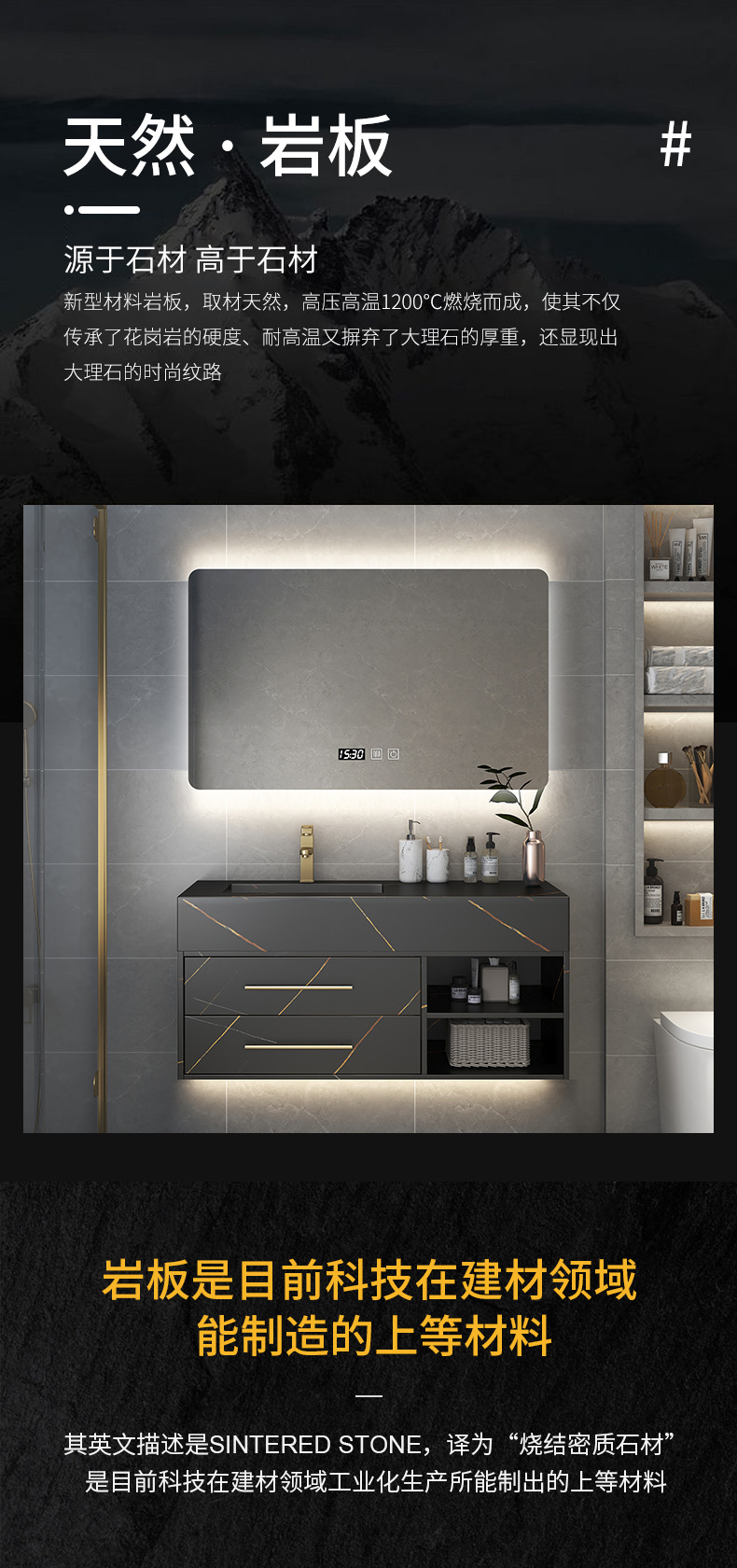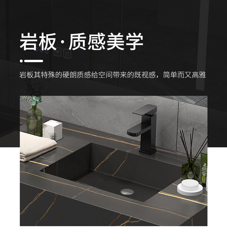 岩板浴室柜轻奢挂墙式智能镜洗手台洗脸盆柜组合洗漱台黑色加宽柜