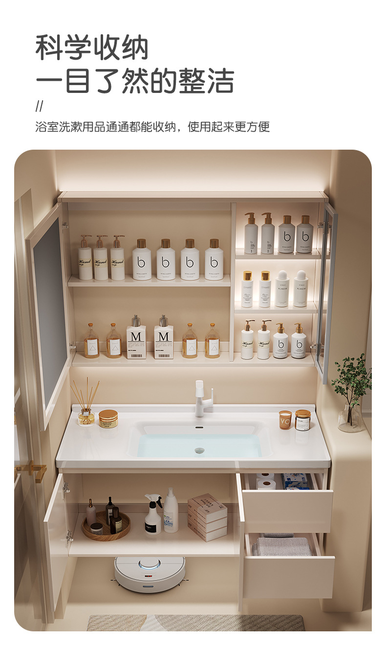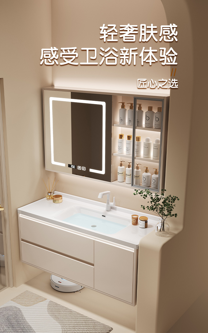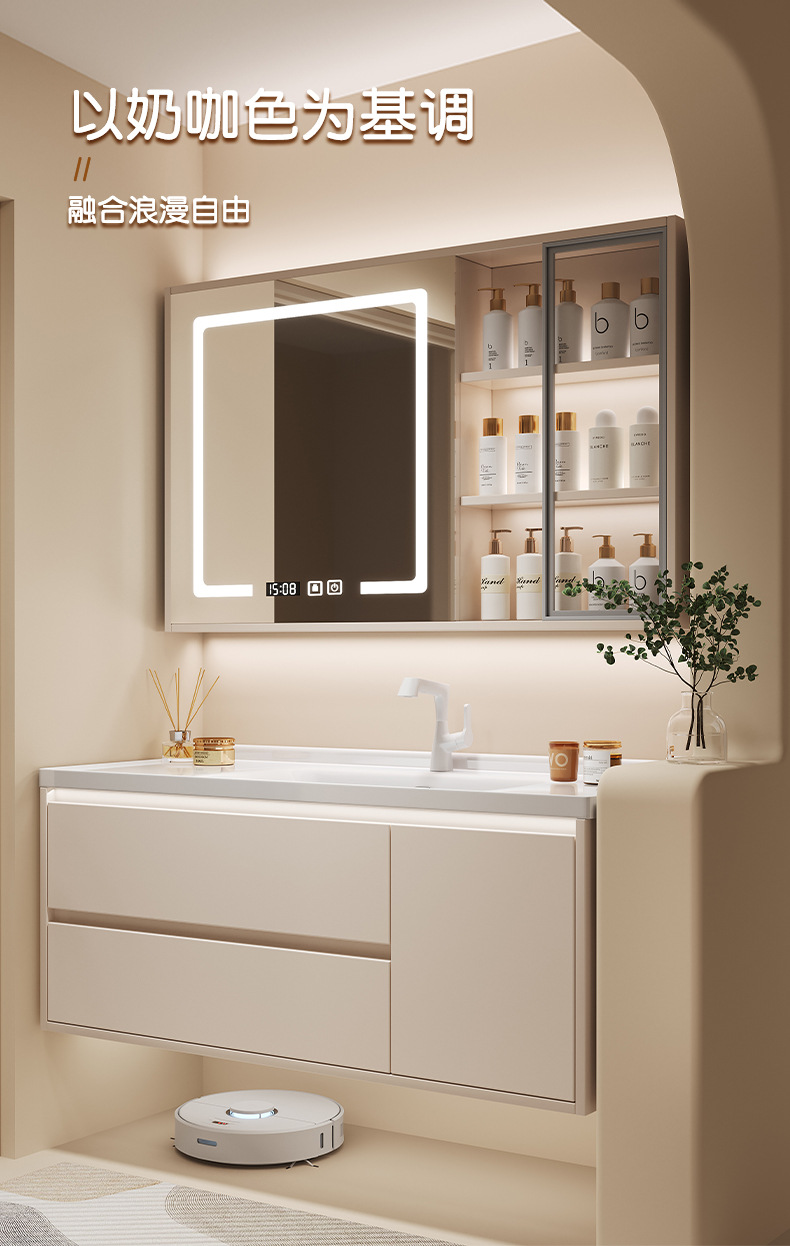 奶油风浴室柜卫生间洗漱台洗脸盆柜组合挂墙式陶瓷一体盆洗手台柜