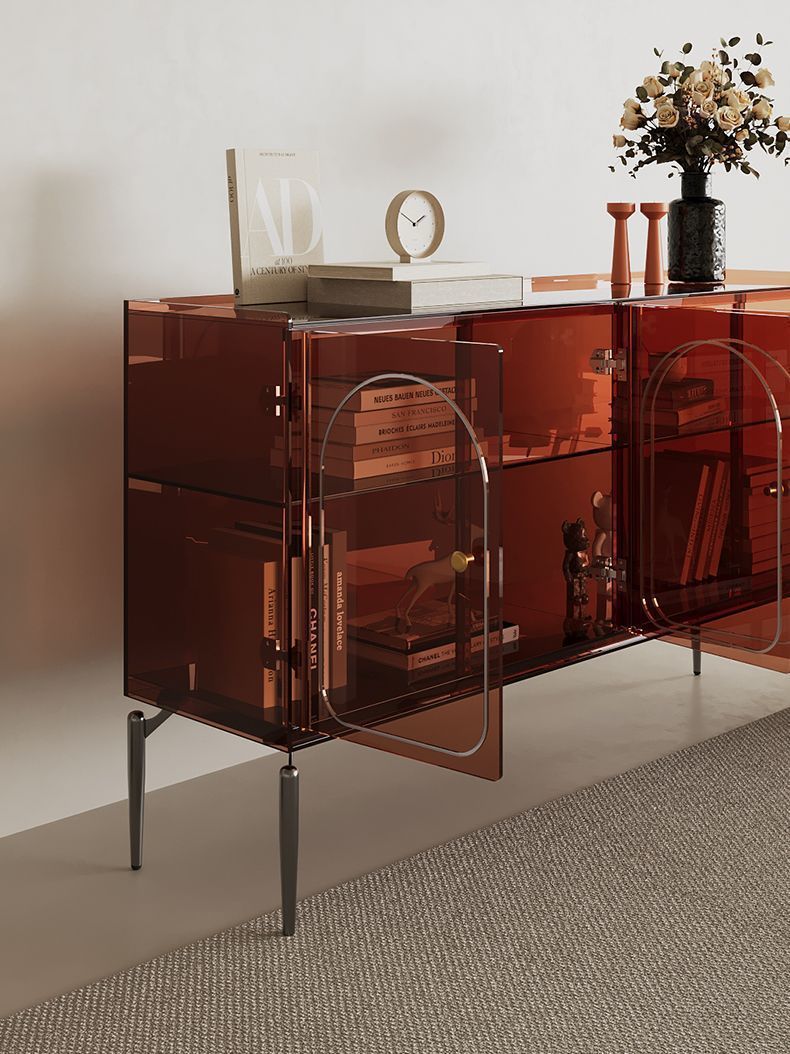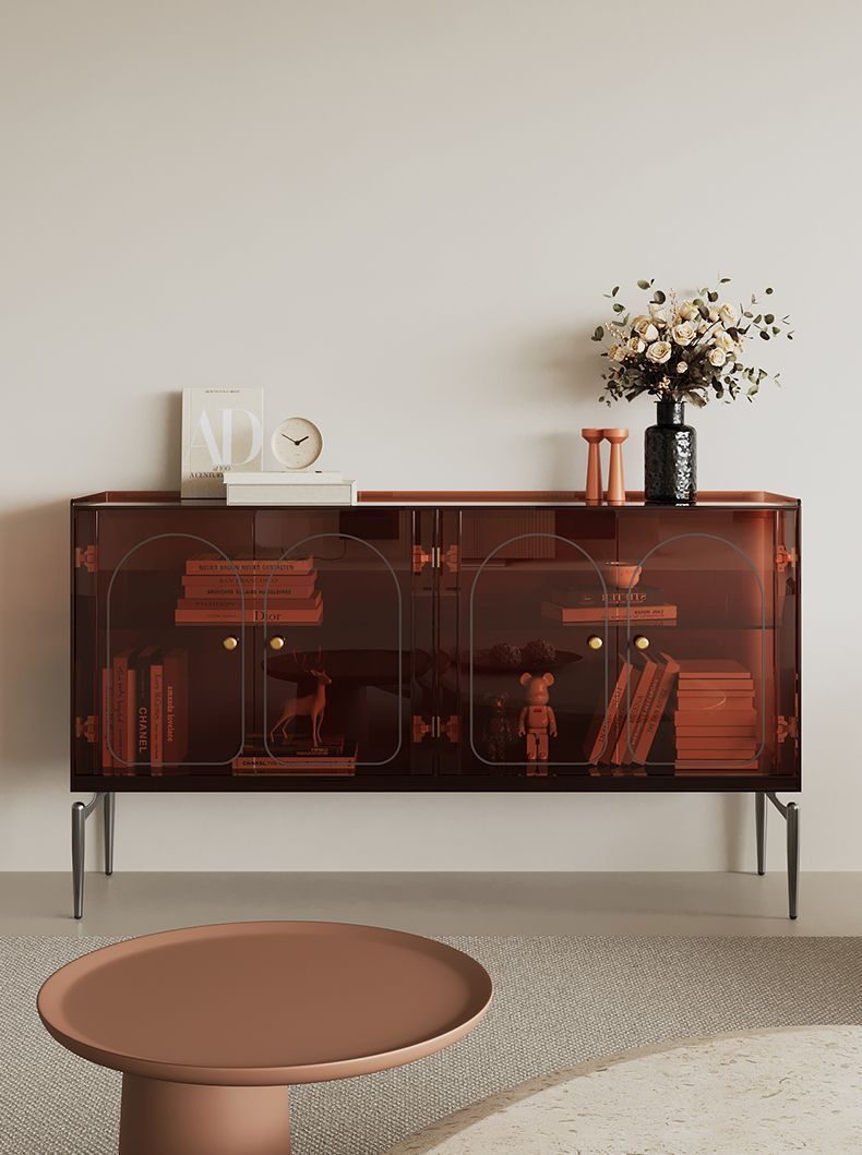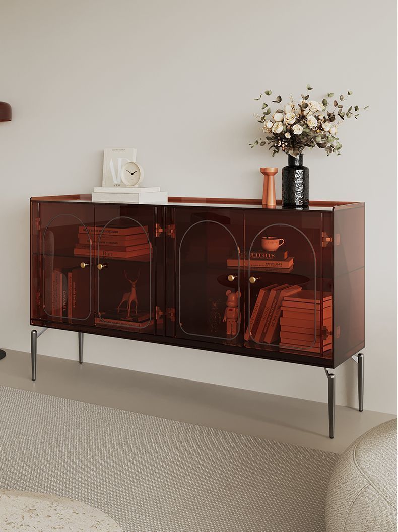 意式极简餐边柜亚克力玄关柜客厅边柜靠墙茶水柜酒柜收纳储物柜