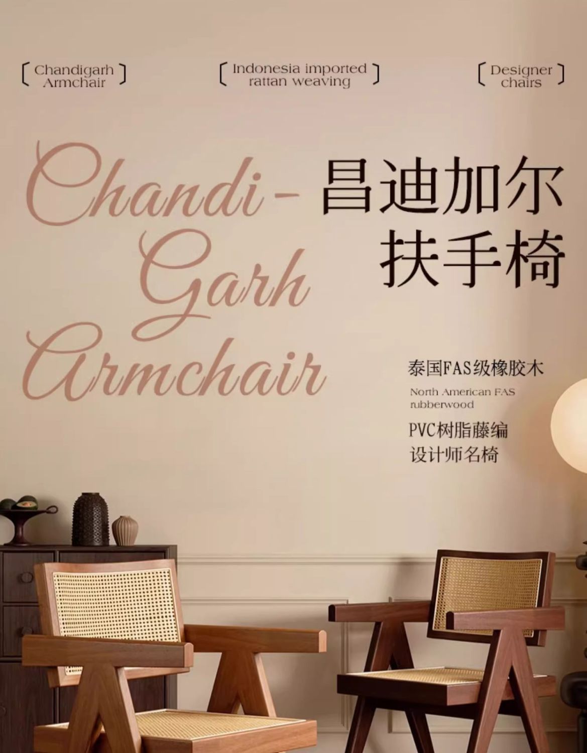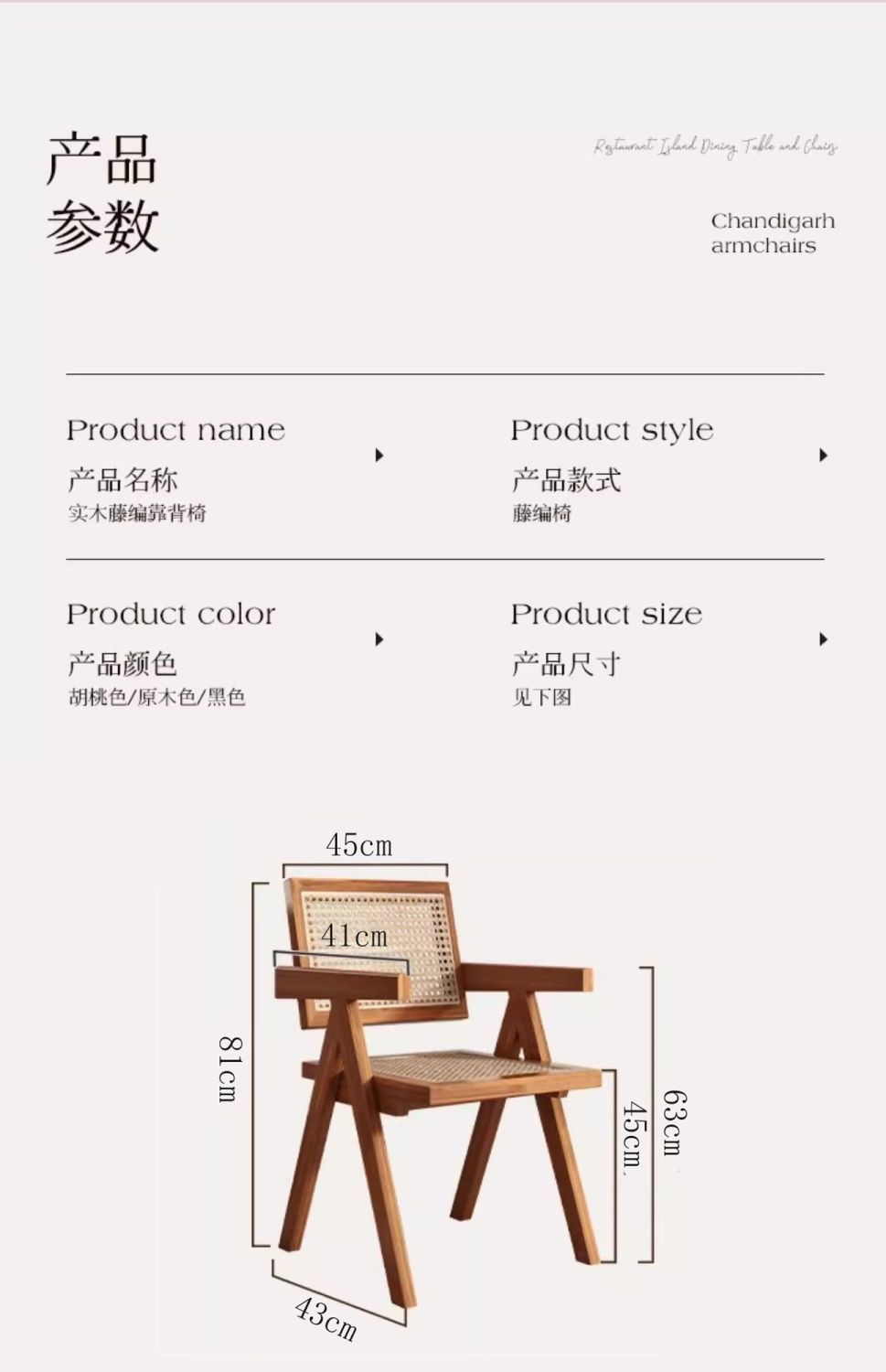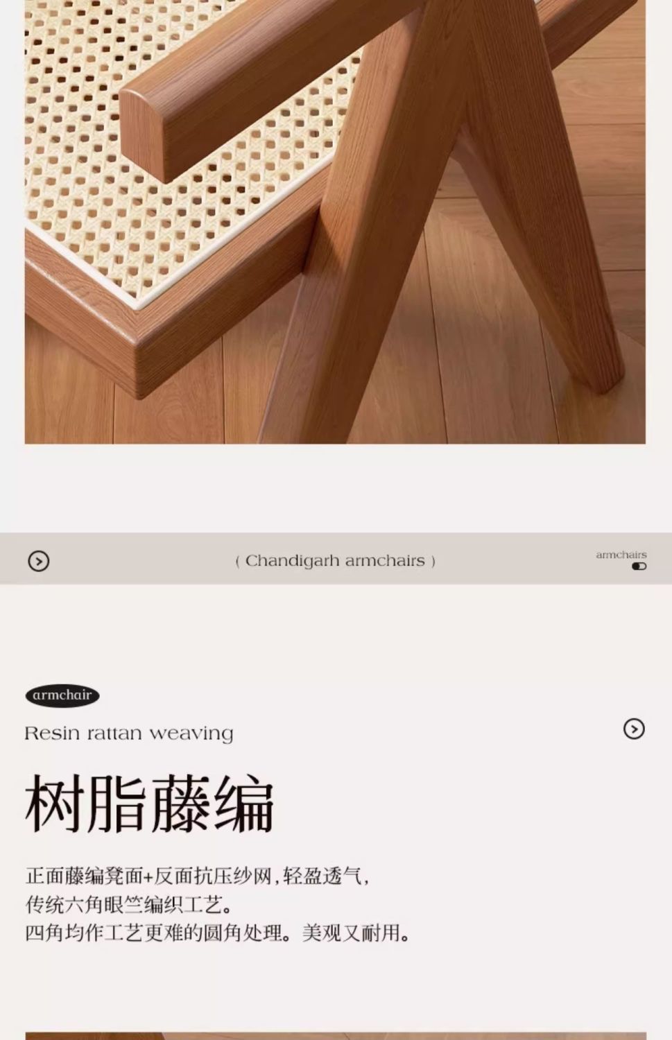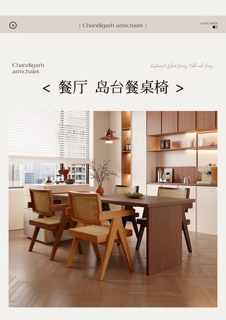 昌迪加尔椅子家用藤编餐椅实木北欧原木风民宿靠背网红侘寂风餐椅