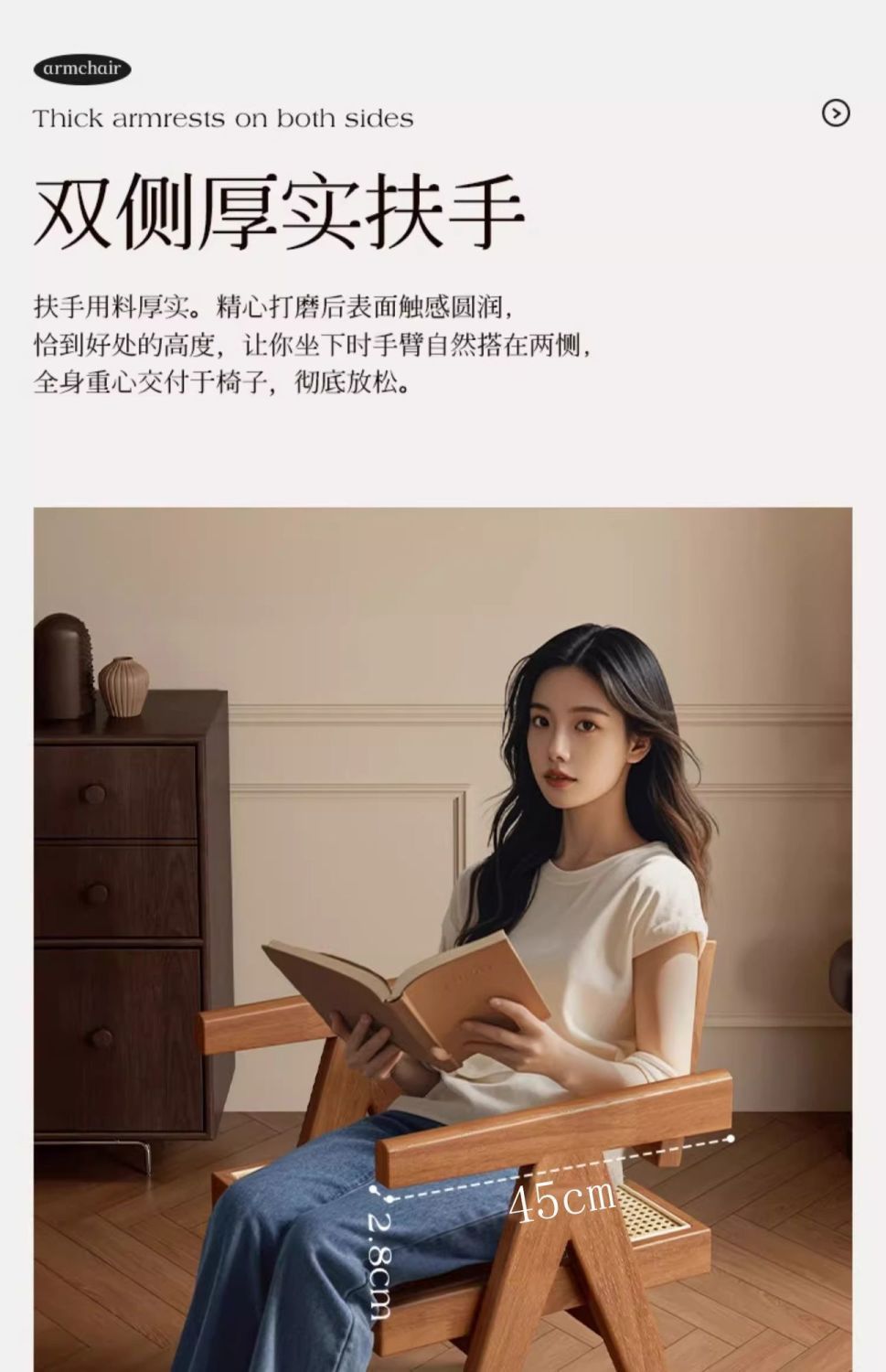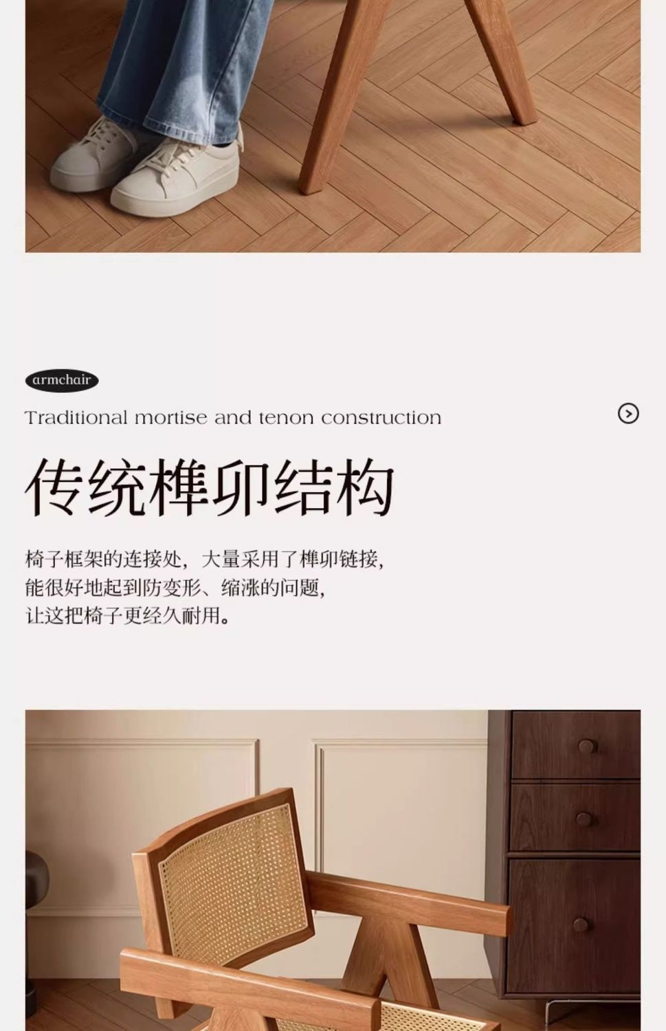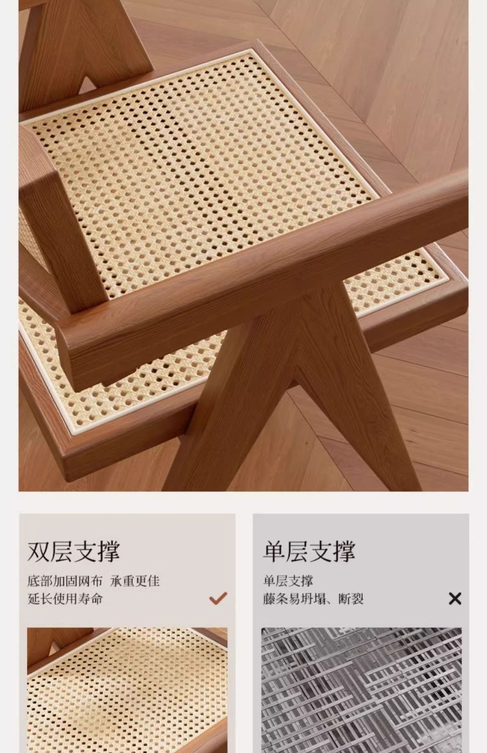 昌迪加尔椅子家用藤编餐椅实木北欧原木风民宿靠背网红侘寂风餐椅