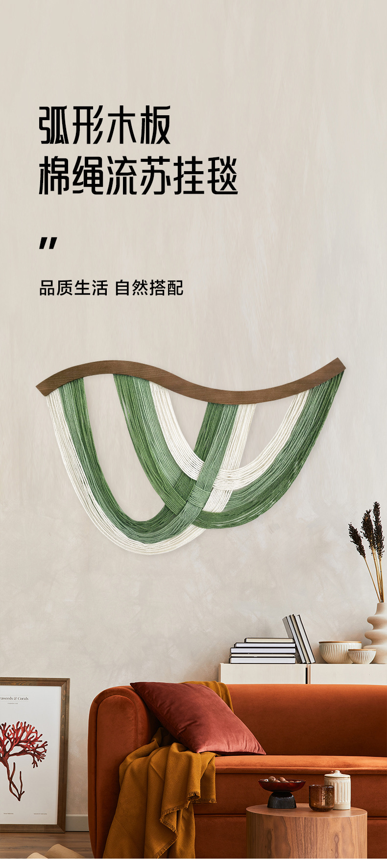 现代简约走廊挂毯家居流苏棉绳墙壁挂布客厅床头墙面背景装饰