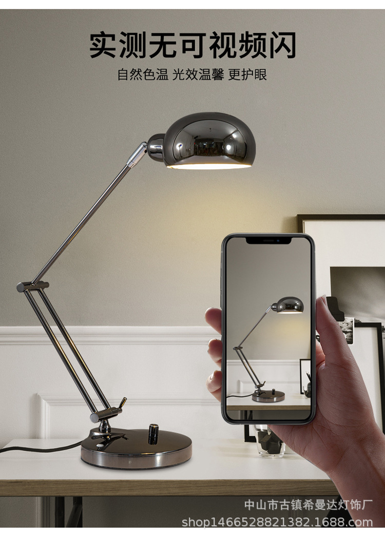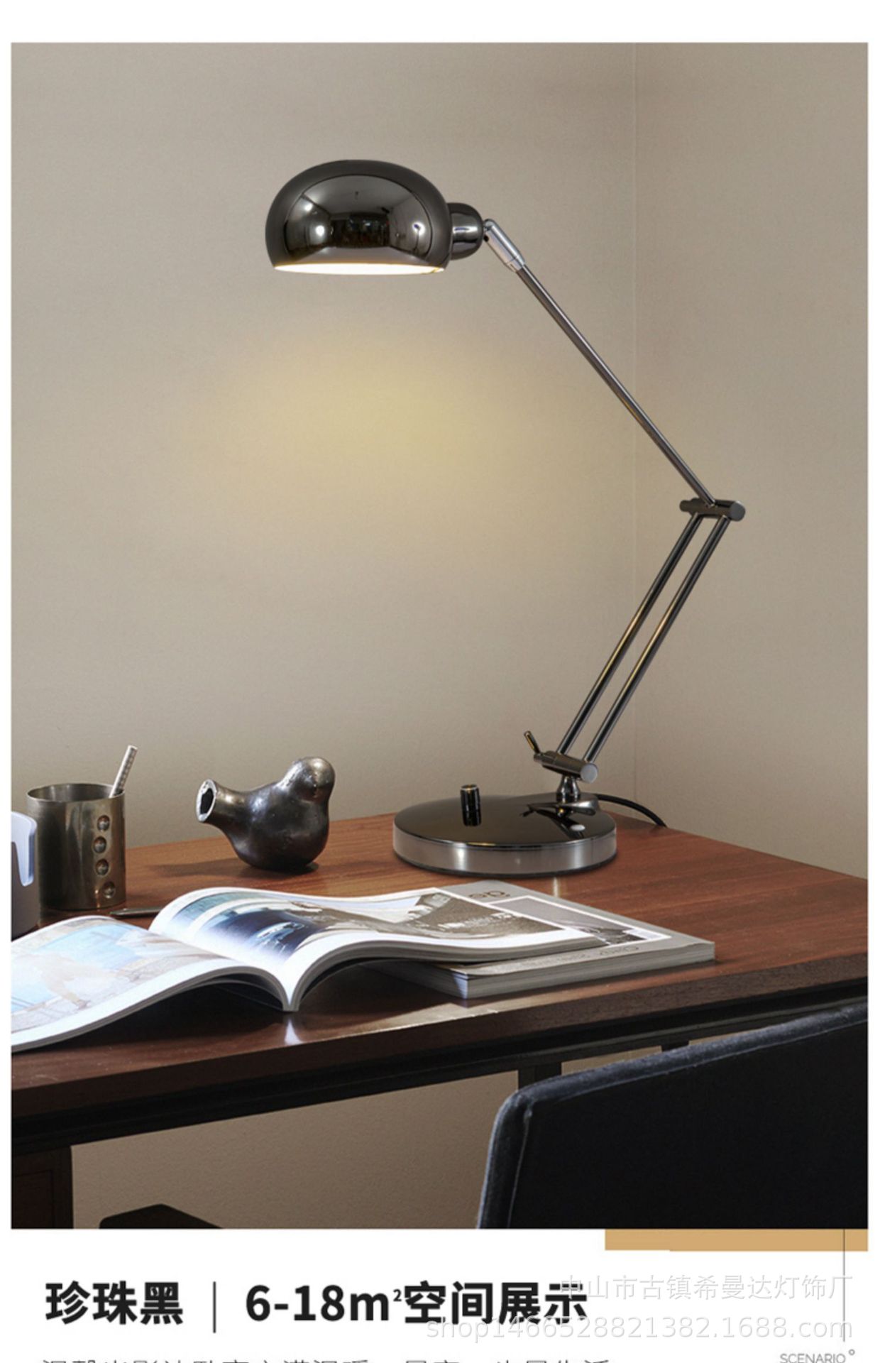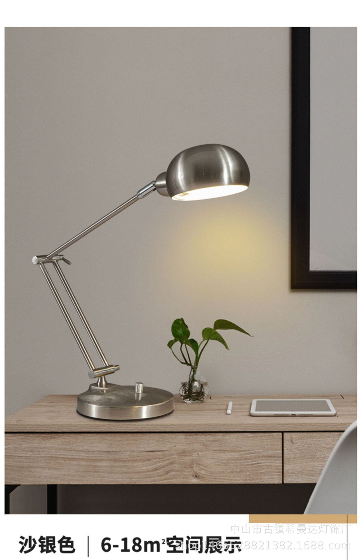 现代简约金属长臂折叠护眼学习台灯阅读书桌卧室床头调光LED