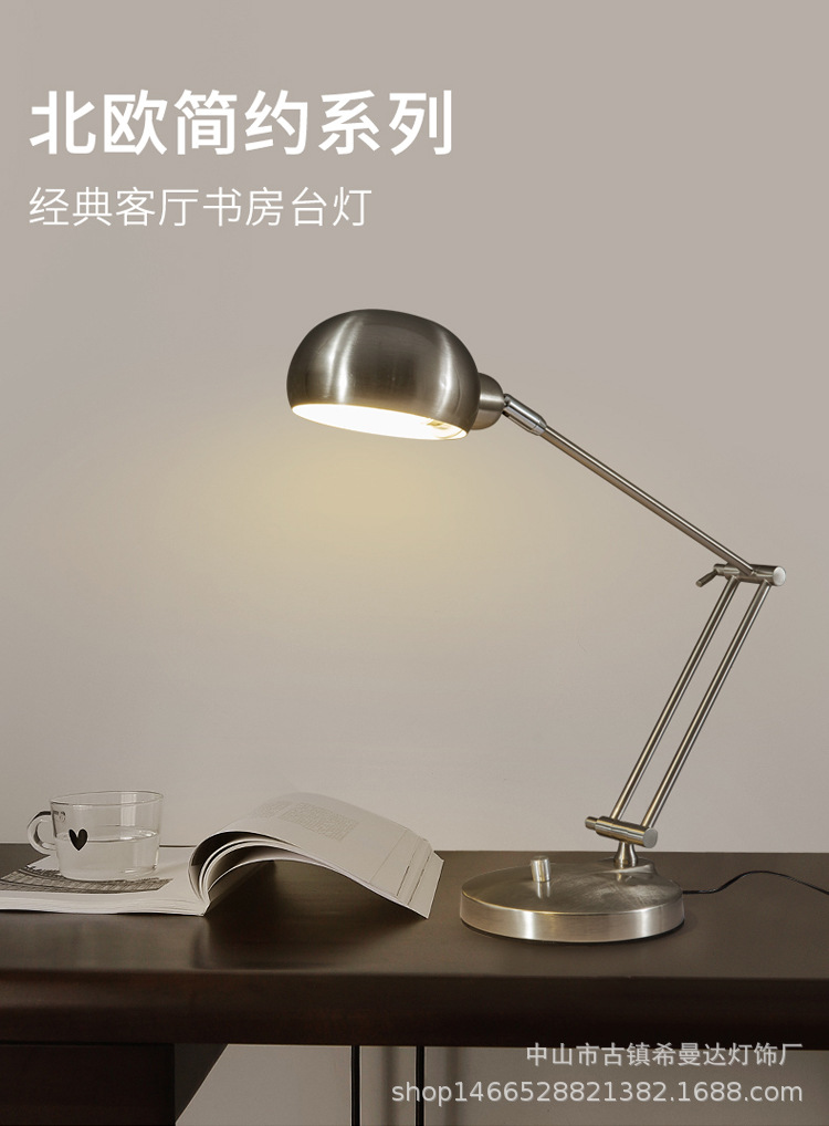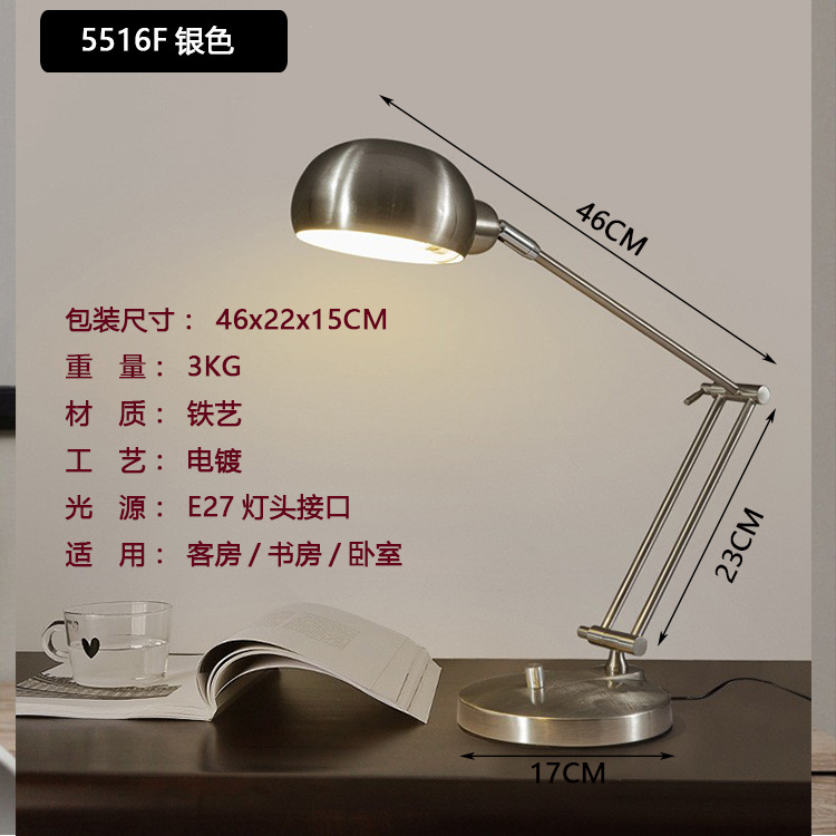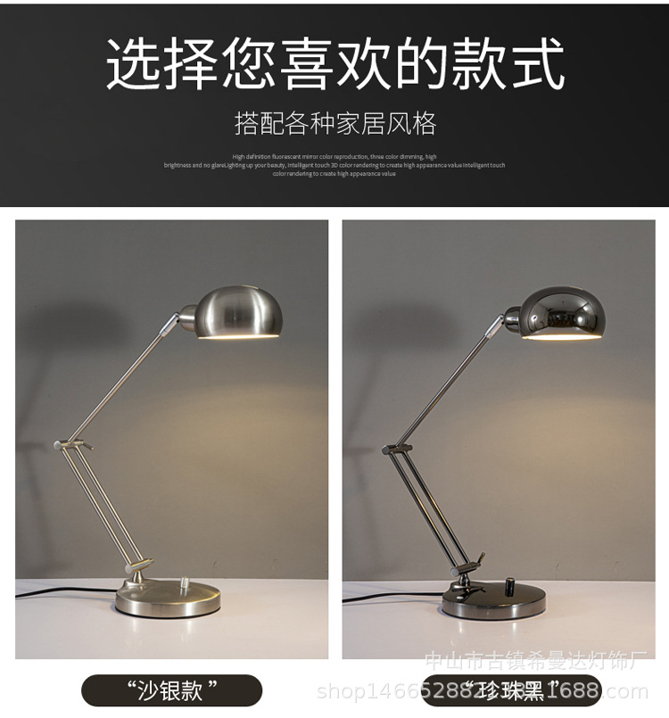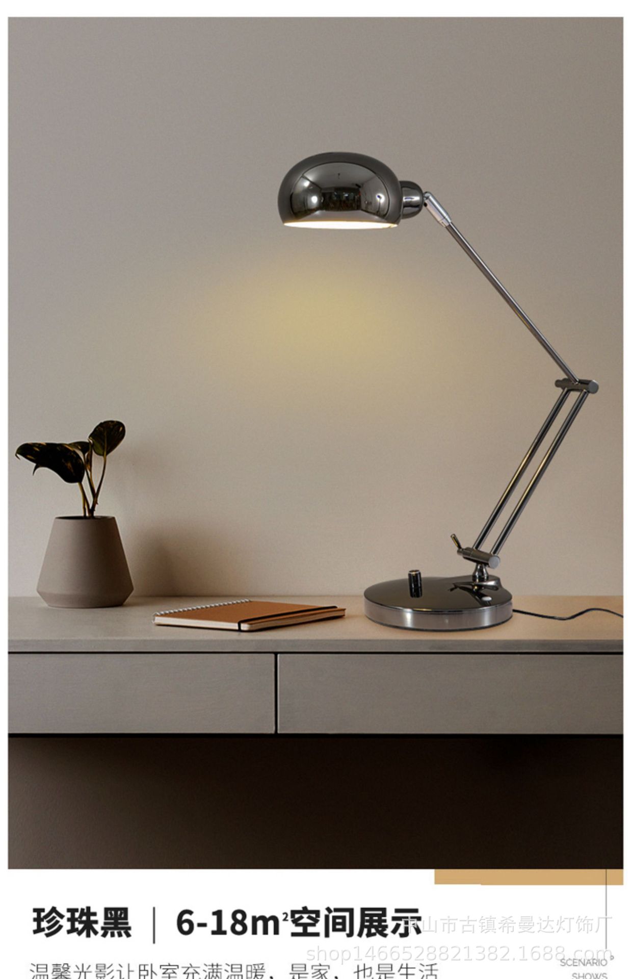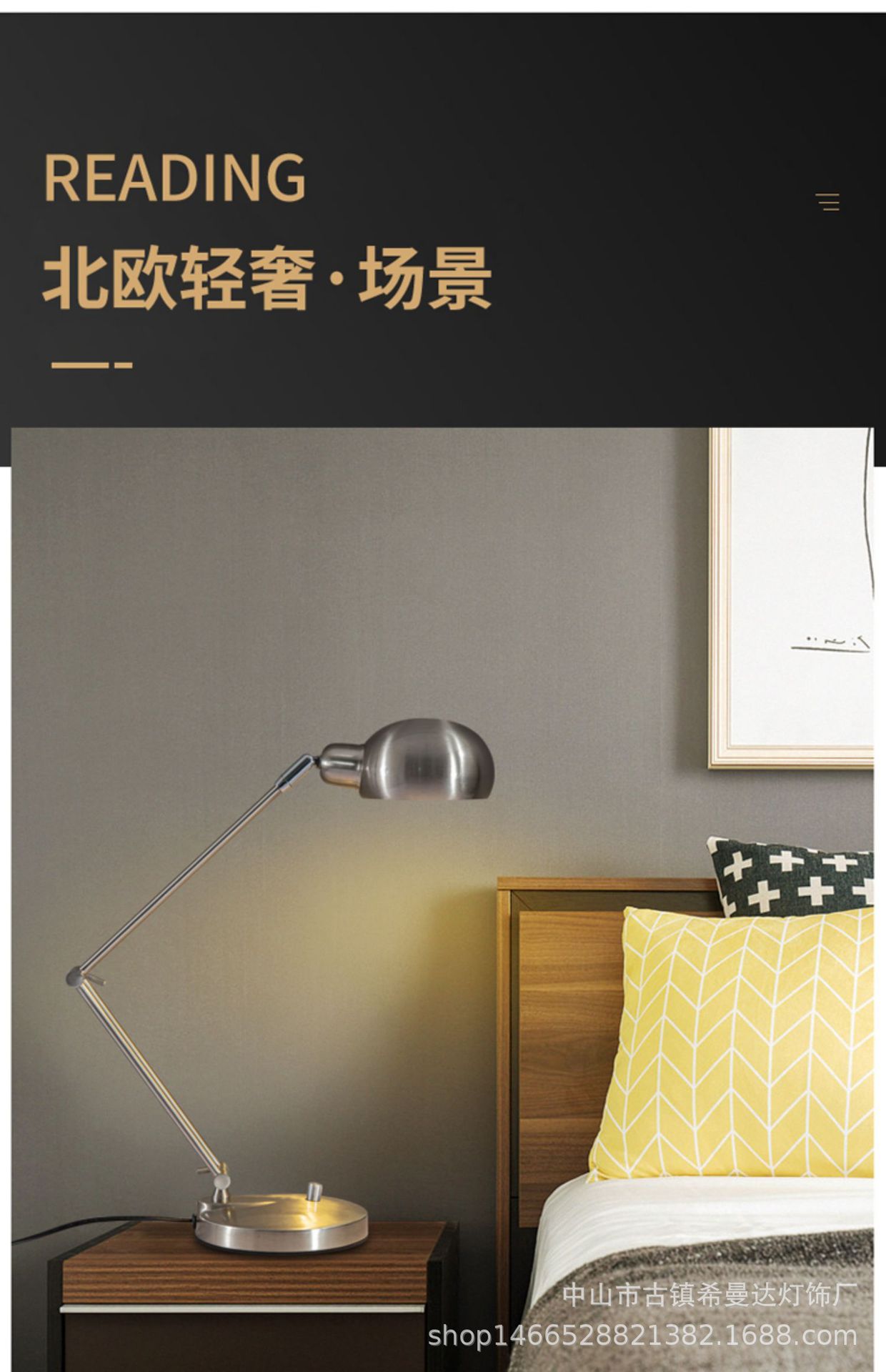现代简约金属长臂折叠护眼学习台灯阅读书桌卧室床头调光LED